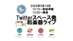 未分類 Twitterスペース「和楽器愛を聞かせて‼」2022年下半期 2022年7月14日 Twitterのスペースでダベっている記録です。 第42回 2022年7月1日 金曜日22時からは和楽器をネタにダベリましょう!#和スペhttps://t.co/g58PQ8q0SZ— 好田 慎一 (@shin1_k) July 1, 2022 第43回 2022年7月8日 金曜日22時からは和楽器をネタにダベリましょう!#和スペhttps://t.co/JNWlsUfpUb— 好田 慎一 (@shin1_k) July 8, 2022