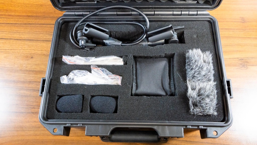 ケースに入れるものは下記の通り。カメラ用のマイク関係一式とした。