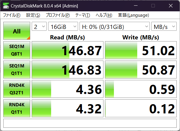 動画撮影用のメモリーを使用してみたところ、全くバッファーが溜まることなく使用できている。完全にオーバースペックではあるが、速度さえ確保できる物を使えば、問題なく記録できることが分かる。
