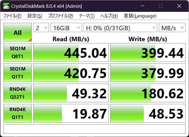 適当なケーブルを使用しても、これだけの速度が出る。安定して録音が出来る。