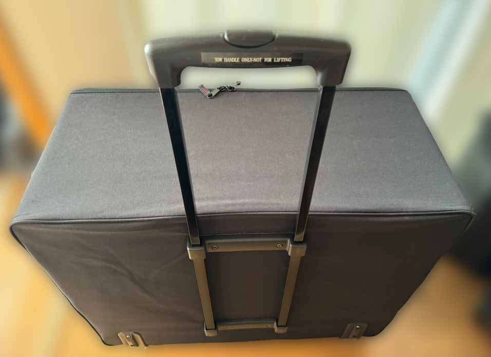 背面側にタイヤと、持ち手がついており、運ぶのは容易になる。